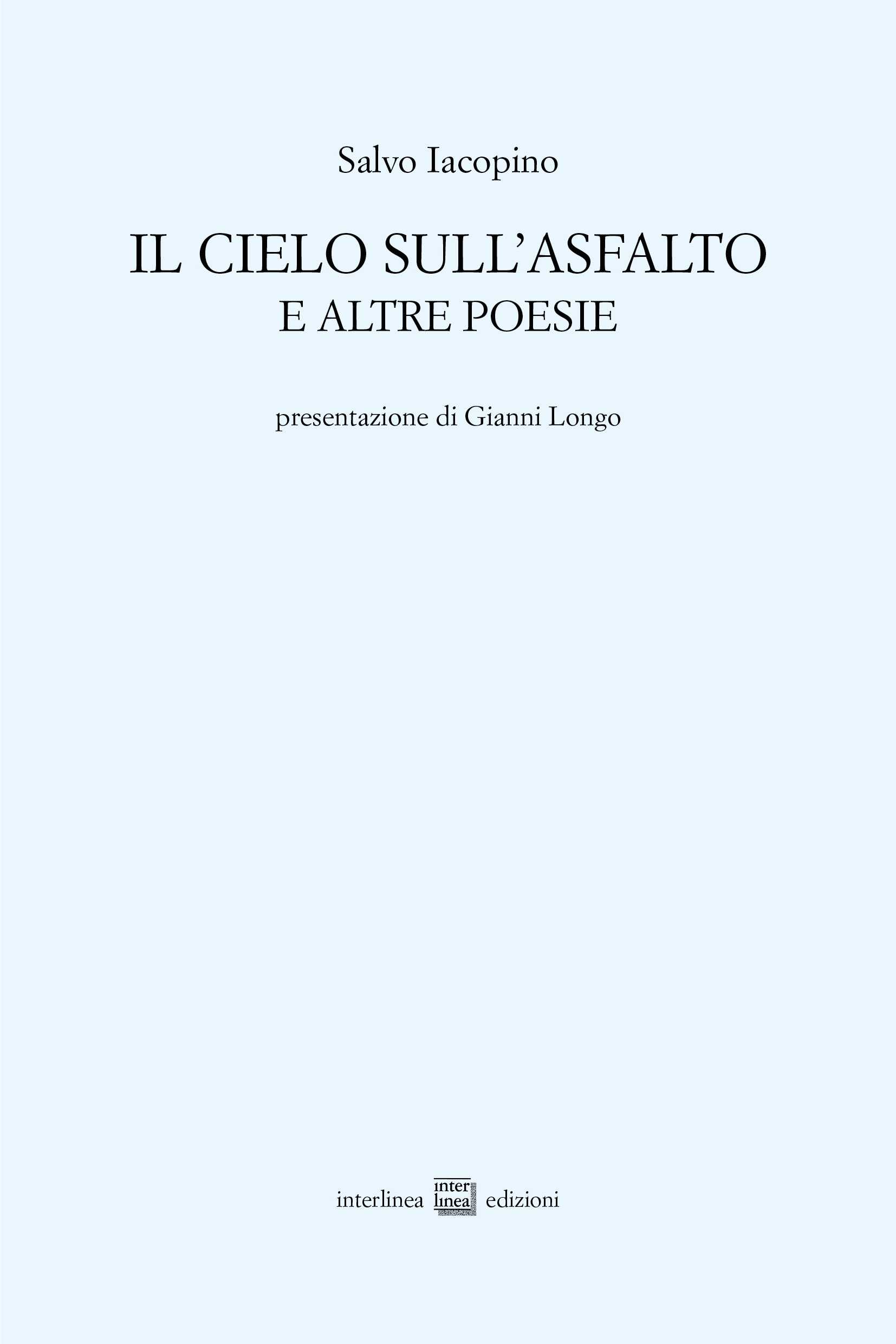 IL CIELO SULL’ASFALTO è la mia seconda raccolta di versi, pubblicata dalla Casa editrice INTERLINEA. 1^ Edizione Giugno 2023.